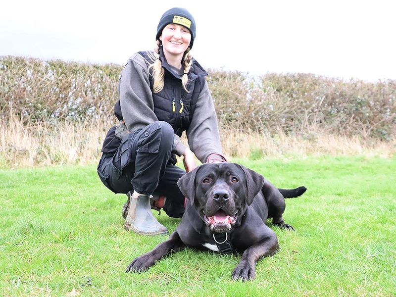 Hugo's ideal home Hugo is a very handsome 1yr old Labrador Mastiff Crossbreed who would love to find a new home with people who LOVE big Dogs! He is very strong and unfortunately struggles to keep his paws on the floor. This all due to his giddy, playful personality, but his new family must be able to hold him safely on lead and be comfortable around big strong Dogs generally.
