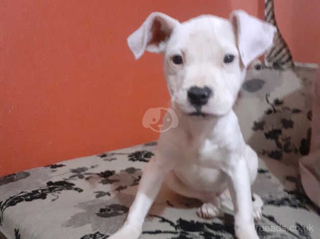 American bulldog puppy For sale due to relocation not enough space for her unfortunately. Please genuine calls only..